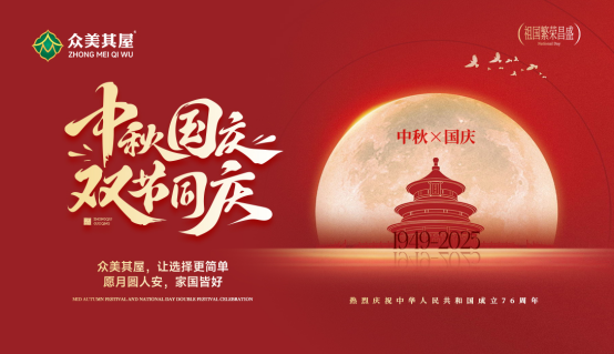 众美其屋的祝福从不止于言语,更是藏在每一块环保板材的安心里、每一道深压纹理的精致里。值此双节,愿你与家人常伴、喜乐常随,日子如月光般温柔,与家国同庆、共圆满。