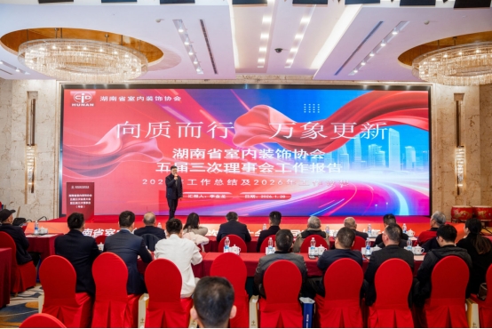 湖南省室内装饰协会会长李金龙代表协会理事会,全面系统地总结了2025年度协会各项工作成效,从行业服务、规范治理、资源整合等多维度复盘过往,同时清晰部署了新一年度的重点工作方向与核心任务。