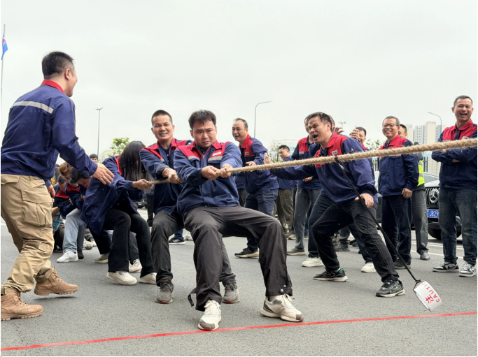 平日里并肩奋斗的同事们,此刻化身并肩作战的队友,握紧绳索、齐心协力,在呐喊与助威中凝聚团队力量,展现金玛人昂扬向上的精神风貌。