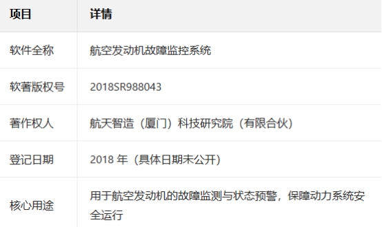 随着军民融合战略的深入推进,航天高端技术向民用领域的转化正加速落地。近日,航天智造(厦门)研究院的这一成果,再次为航空动力民企升级注入了新动能。该院成功收购“航空发动机故障监控系统软件”计算机软件著作权(软著版权号:2018SR988043)。此举不仅充实了研究院在航空动力智能监测领域的知识产权储备,更标志着其在航天技术民用转化、高端装备故障防控领域迈出坚实一步,为我国航空发动机安全运行注入航天级底气。