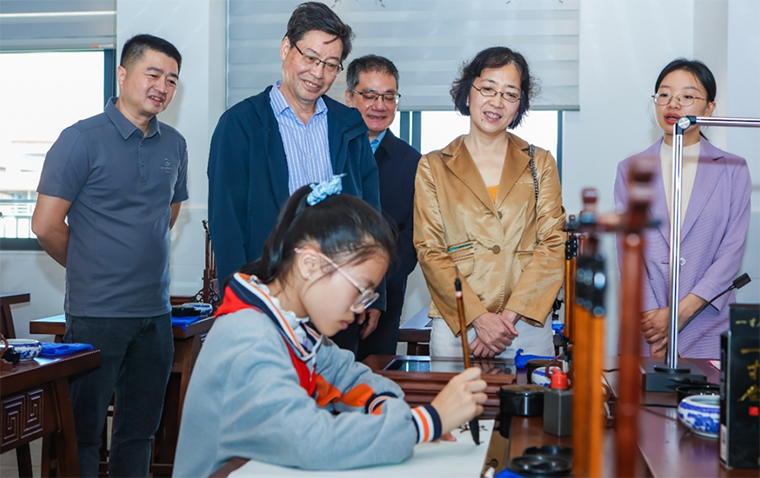 智慧书法教室的建设,是“启明星计划”推动教育数字化、智能化的又一探索实践。智慧书法教室将传统书法艺术与现代科技设备深度结合,配备智能临摹平台、数字字库、专业教学软件等设施,为学生提供沉浸式和智能化的书法学习环境,真正实现“寓教于墨、融技于学”。
